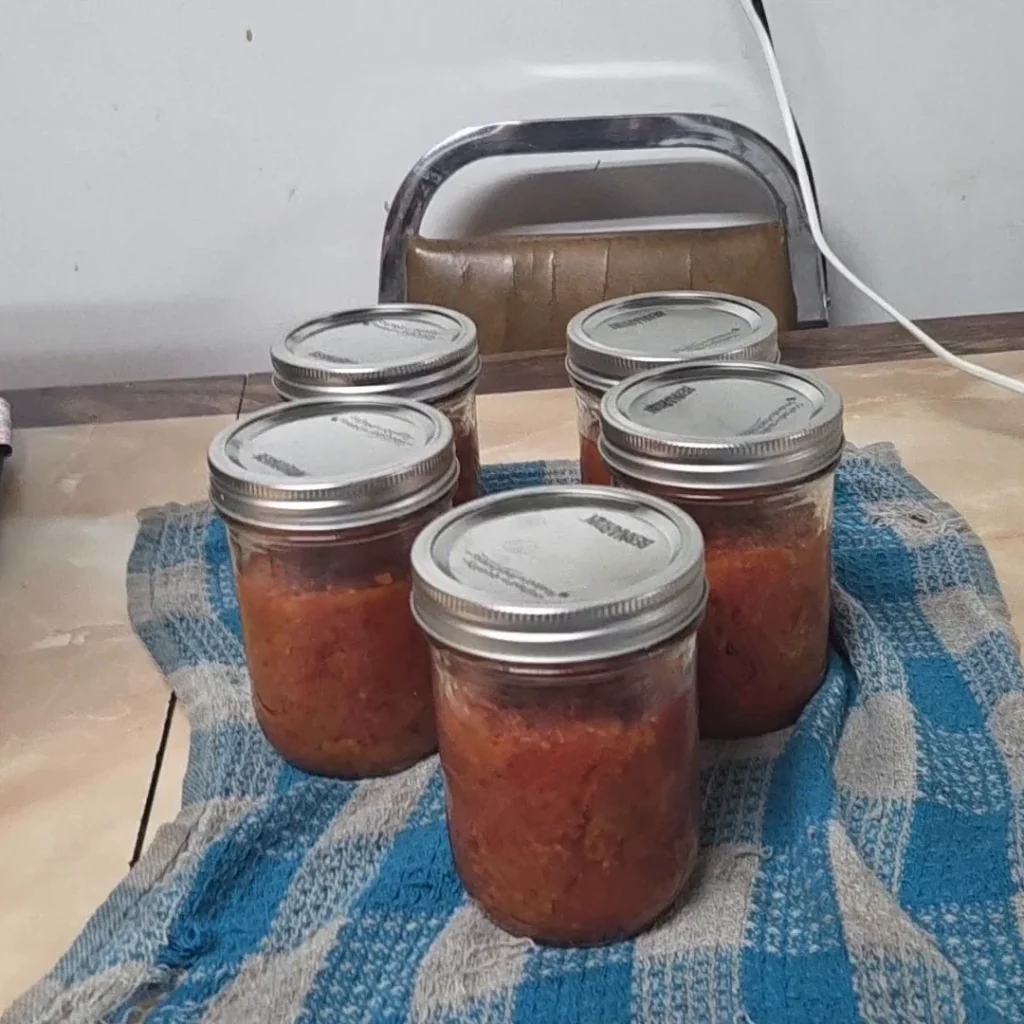 Overall, this was a solid batch and a good reminder that frozen tomatoes work just fine for canning — as long as they’re fully thawed and properly cooked first.